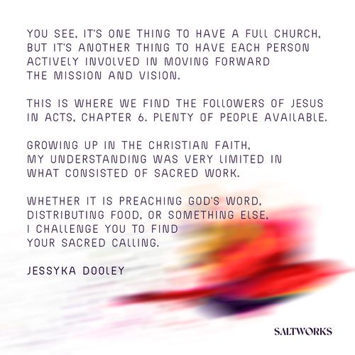 Growing up in the Christian faith, my understanding was very limited in what consisted of sacred work. This perception of ministry remained clouded for many years, even as I pursued a degree in theology. Doing "God’s work" seemed to consist of public speaking and leading a spot-on Bible study. It looked quite a bit like what the twelve apostles were doing.