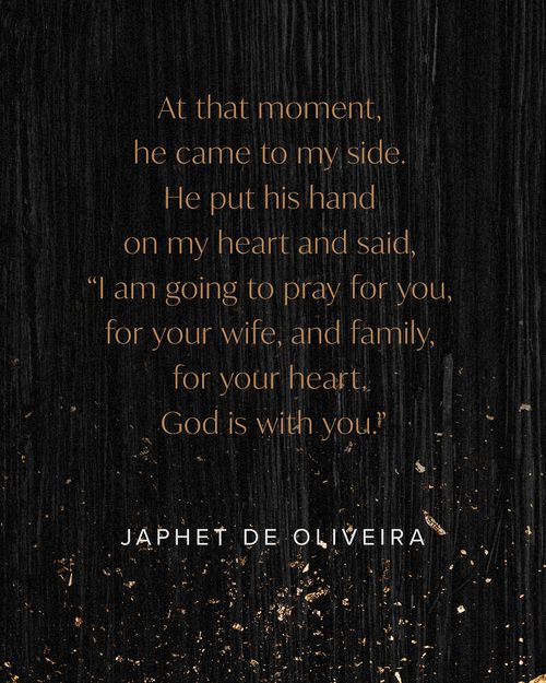 I turned my head back, searching for the EMT with whom I had shared this conversation. I disclosed that my wife was dying, and begged him to save me. At that moment, he came to my side. He put his hand on my heart and said, “I am going to pray for you, for your wife, and family, for your heart. God is with you.”