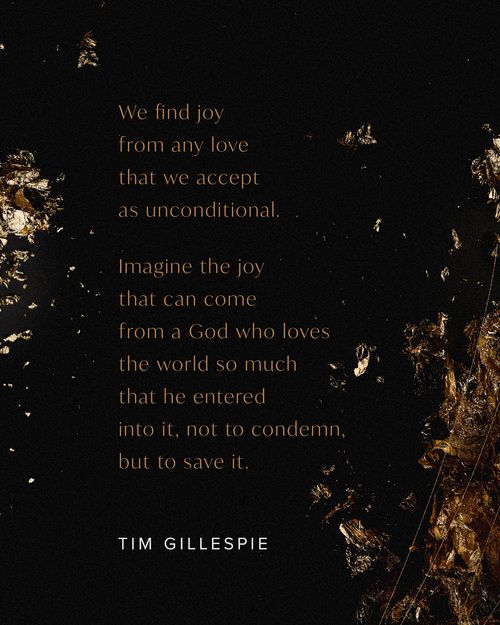From the love of our parents to the love of a partner, we are flooded with feelings of joy when we recognize and accept the love that is offered to us. And while there is “no greater love than one who lays down his life for another…” we don’t really even find joy from that kind of love. We find joy from any love that we accept as unconditional. I am reminded of this, as I write with two dogs at my feet. Their unwavering love means that they are never too far from me. I accept that love and find joy in it as well. Imagine the joy that can come from a God who loves the world so much that he entered into it, not to condemn, but to save it.