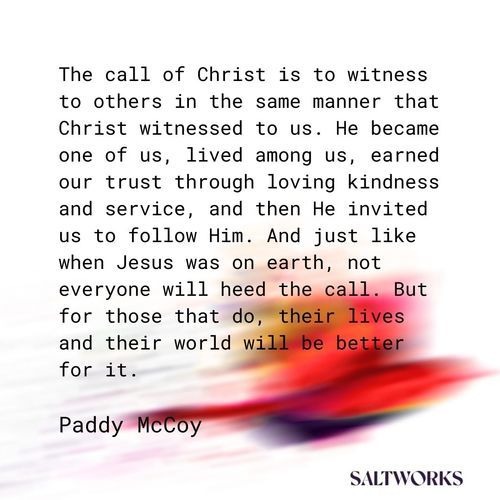 The call of Christ is to witness to others in the same manner that Christ witnessed to us. He became one of us, lived among us, earned our trust through loving kindness and service, and then He invited us to follow Him. And just like when Jesus was on earth, not everyone will heed the call. But for those that do, their lives and their world will be better for it.