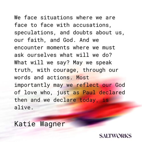 We face situations where we are face to face with accusations, speculations, and doubts about us, our faith, and God. And we encounter moments where we must ask ourselves what will we do? What will we say? May we speak truth, with courage, through our words and actions. Most importantly may we reflect our God of love who, just as Paul declared then and we declare today, is alive.