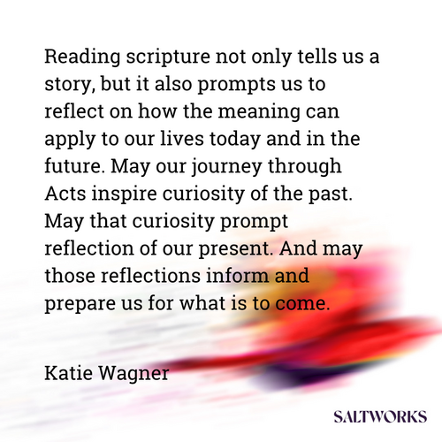 Reading scripture doesn’t only tell us a story but it also prompts us to reflect on how the meaning can apply to our lives today and in the future. May our journey through Acts inspire curiosity of the past. May that curiosity prompt reflection of our present. And may those reflections inform and prepare us for what is to come.