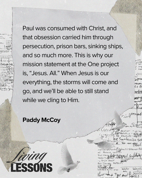 Paul was consumed with Christ, and that obsession carried him through persecution, prison bars, sinking ships, and so much more. This is why our mission statement at the One project is, “Jesus. All.” When Jesus is our everything, the storms will come and go, and we’ll be able to still stand while we cling to Him.