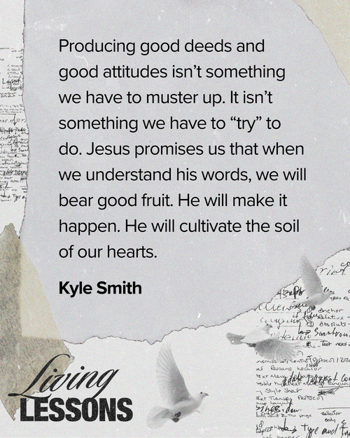 Producing good deeds and good attitudes isn’t something we have to muster up. It isn’t something we have to “try” to do. Jesus promises us that when we understand his words, we will bear good fruit. He will make it happen. He will cultivate the soil of our hearts.